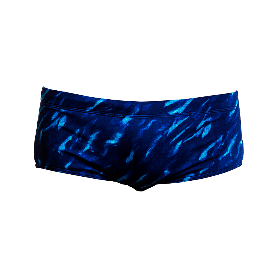 Kiểu quần bơi đùi cơ bản với bản quần dài 16,5cm, mặt trước được gia cố thêm 2 lớp lót bên trong. Dây thun quần chắc chắn giúp cố định quần bơi, co giãn tốt ở phần hông và đùi, luôn thoải mái trong mọi trường hợp.