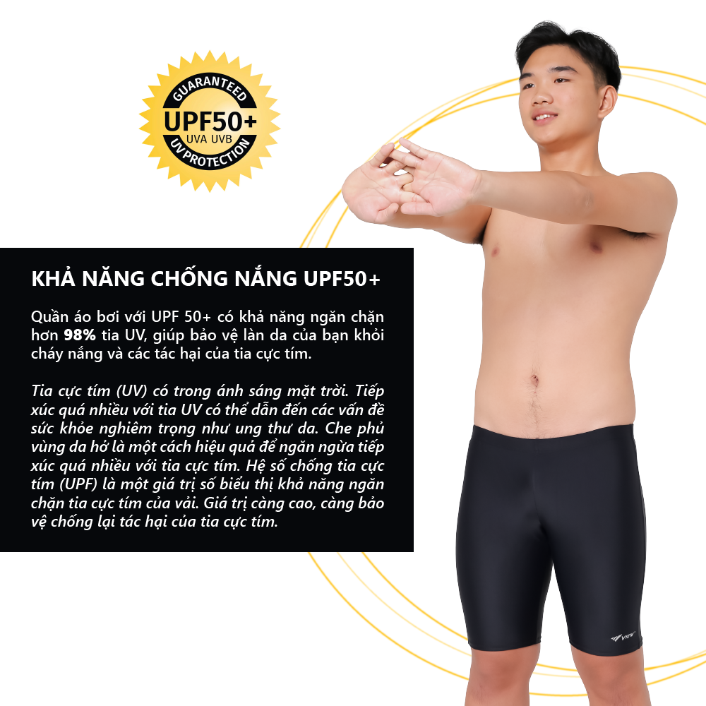 Với công nghệ vải Lycra Xtra Life™, mang lại độ bền gấp 10 lần so với đồ bơi thông thường, duy trì hình dáng vừa vặn sau nhiều lần sử dụng. Với khả năng chống nắng UPF50+, đồ bơi VIEW ngăn chặn hơn 98% tia UV.